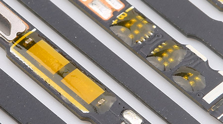 漢思化學提供給客戶的樣品一天之內快速響應,客戶測試合格滿意后再實施量產,按期完成產品交付,并保證樣品到量產的一致。漢思化學底部填充膠的使用,可以分散降低焊球上的應力,有效減少由于芯片與基板熱膨脹系數不匹配或外力造成的沖擊,提高芯片連接后的機械結構強度,提高產品的可靠性。