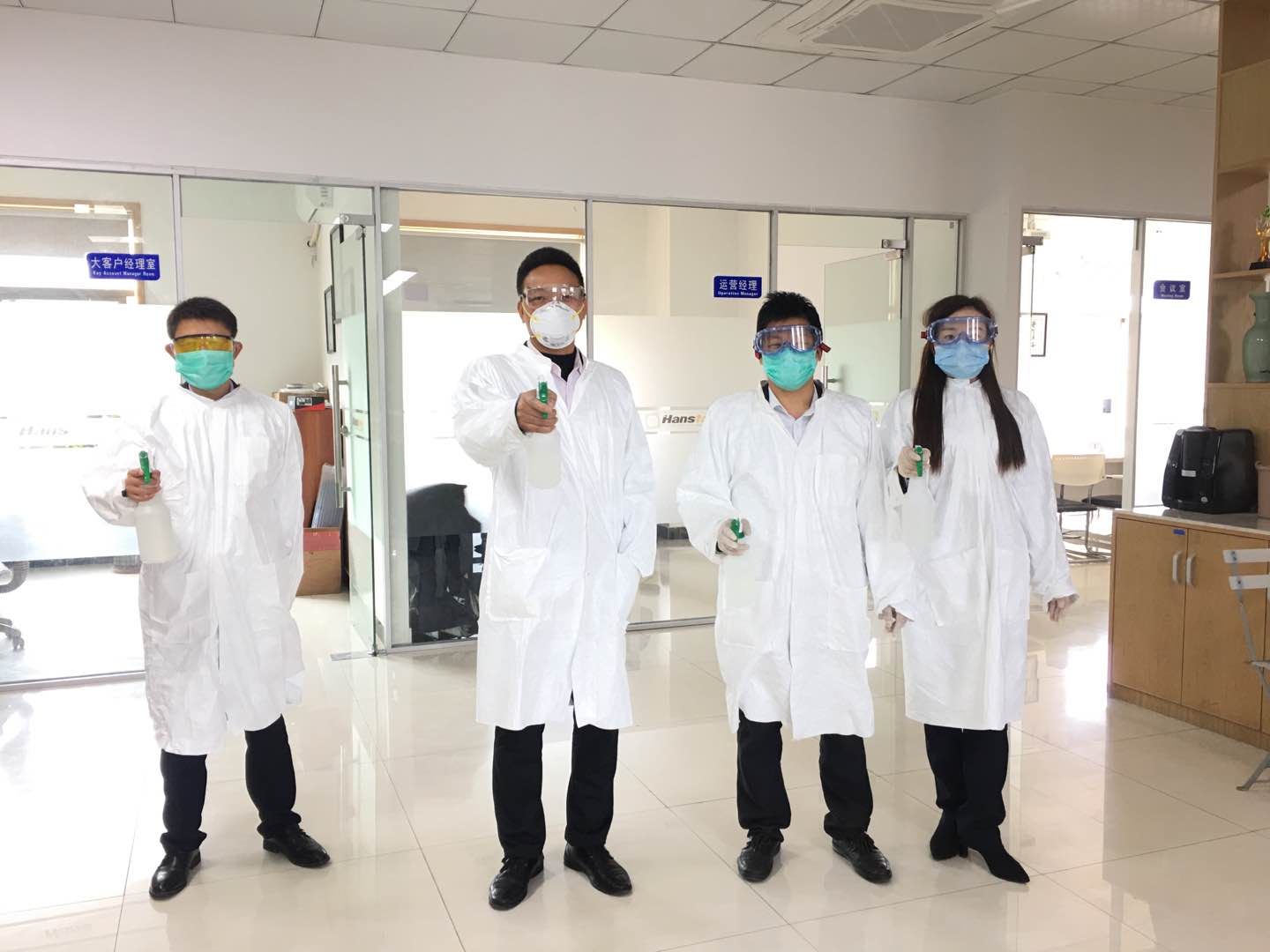 2月17日上午,漢思化學組織公司已到崗的全體部門同事實行健康狀況排查登記,并開展了復工復產前的工作.對公司所有場所進行一次消毒.