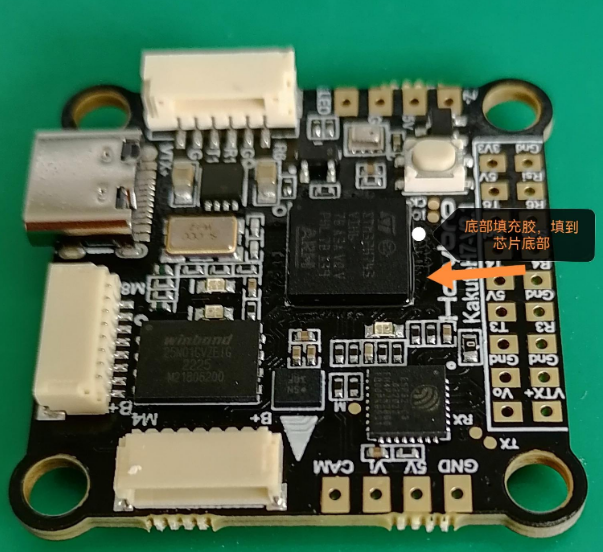 無人機控制板PCB板上有兩個BGA芯片模塊需要底部填充膠點膠加固保護,抗震動,適應(yīng)冷熱環(huán)境沖擊,提高產(chǎn)品的可靠性。